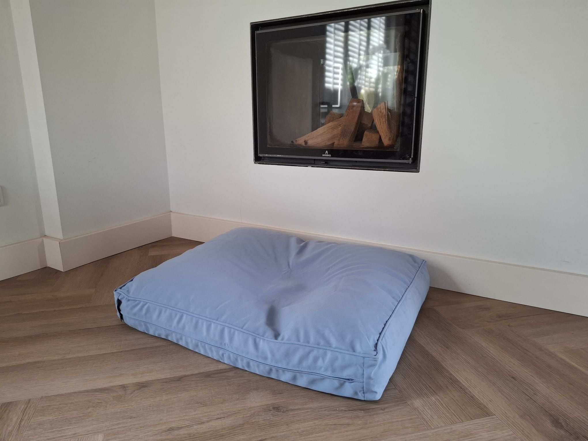 Het blauw hondenkussen geeft een landelijke uitstraling in het interieur. Het is een lust voor het oog én het interieur. Modern, klassiek, landelijk, industrieel, het kussen past in ieder type huis.